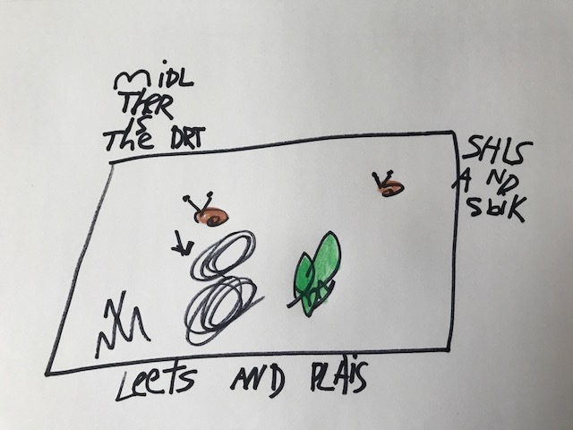 Sophie: Podríamos poner hojas y plantas en un lado, y cáscaras y palitos en el otro lado.