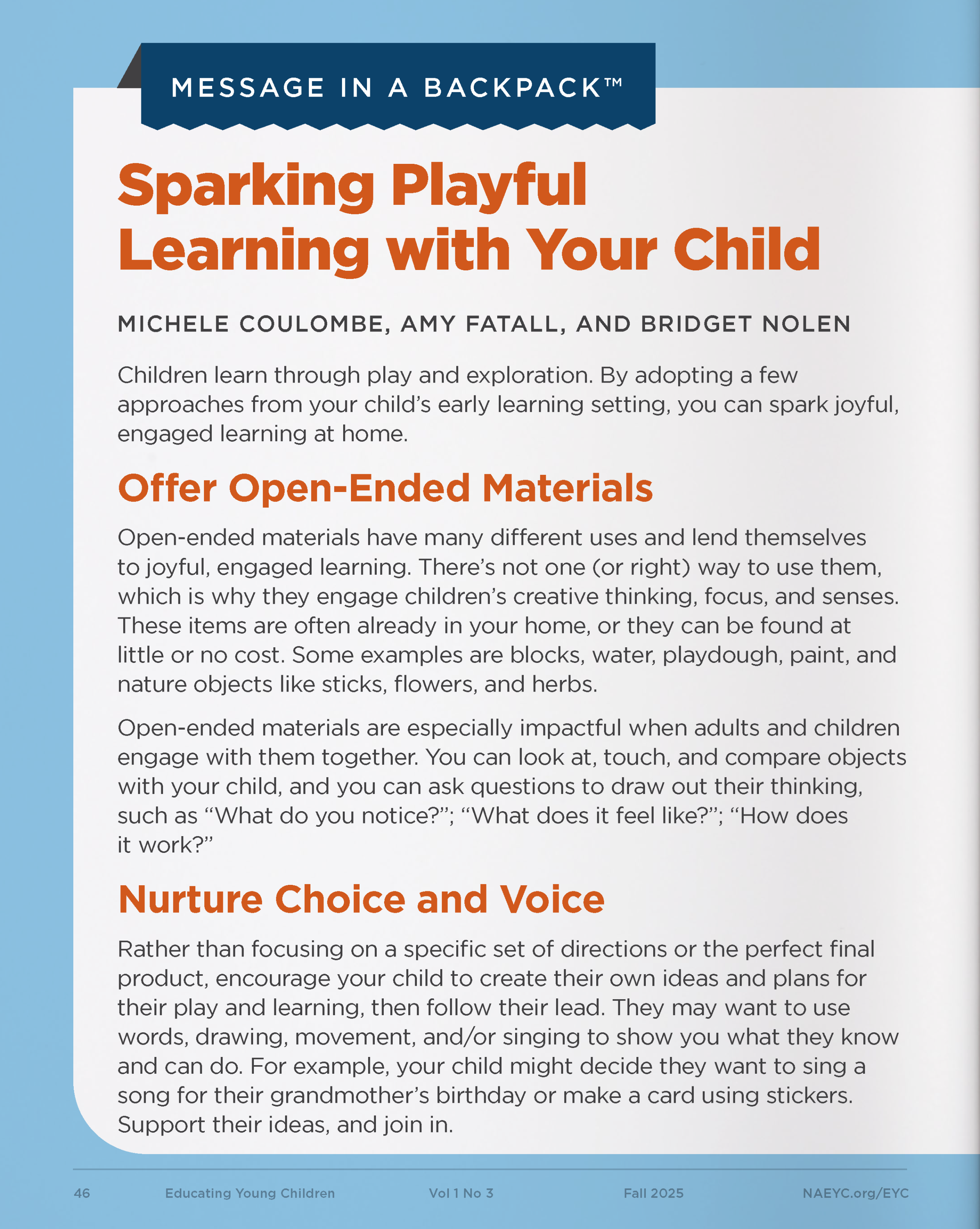 Copyright © 2025 by the National Association for the Education of Young Children. See permissions and reprints online at NAEYC.org/resources/permissions.